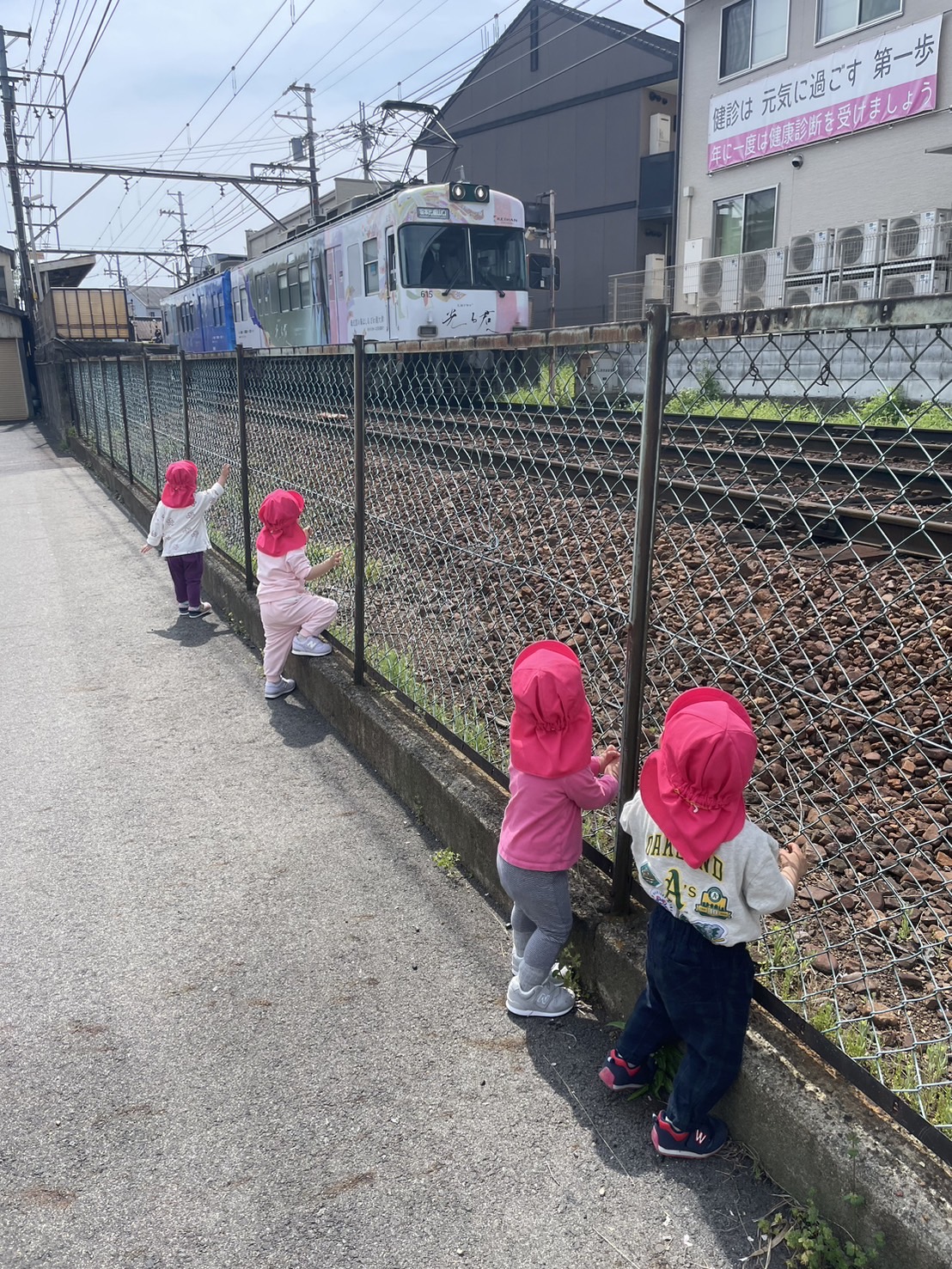 4月10日近くの京阪電車路線横までお散歩もかねて電車を見てきました。 光る君へのラッピング電車を見ました!