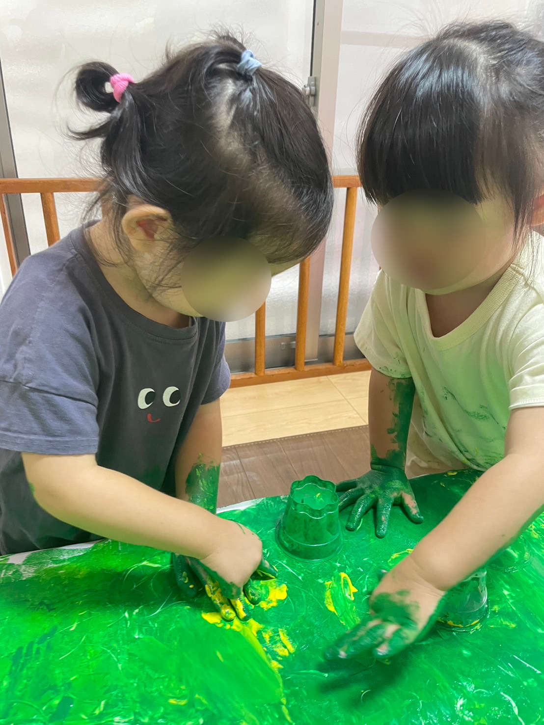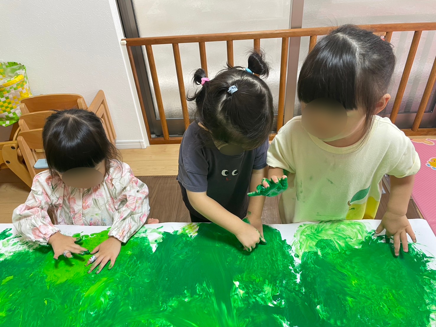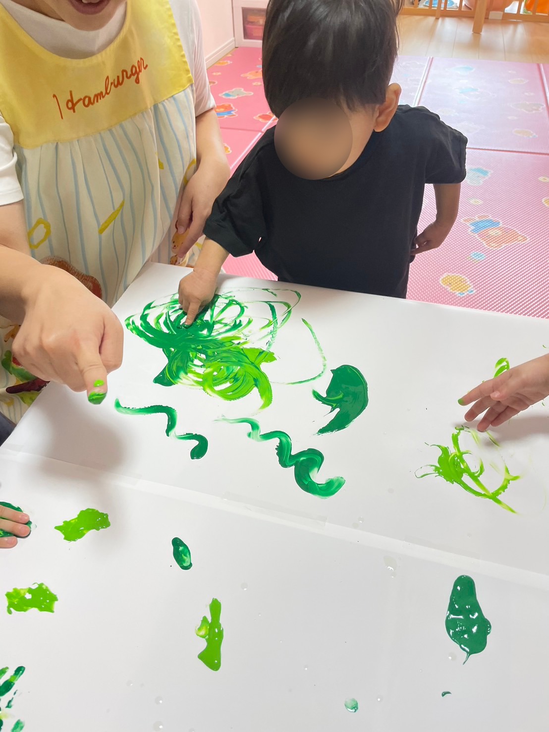 自分の指や手のひらを筆にして絵を描くフィンガーペインティングに挑戦!