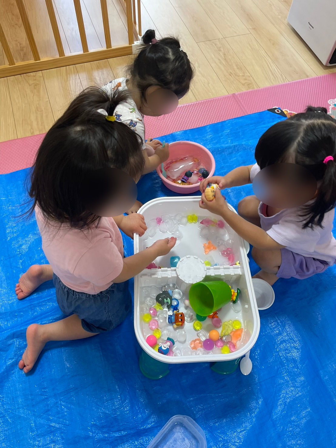 氷で感触遊び