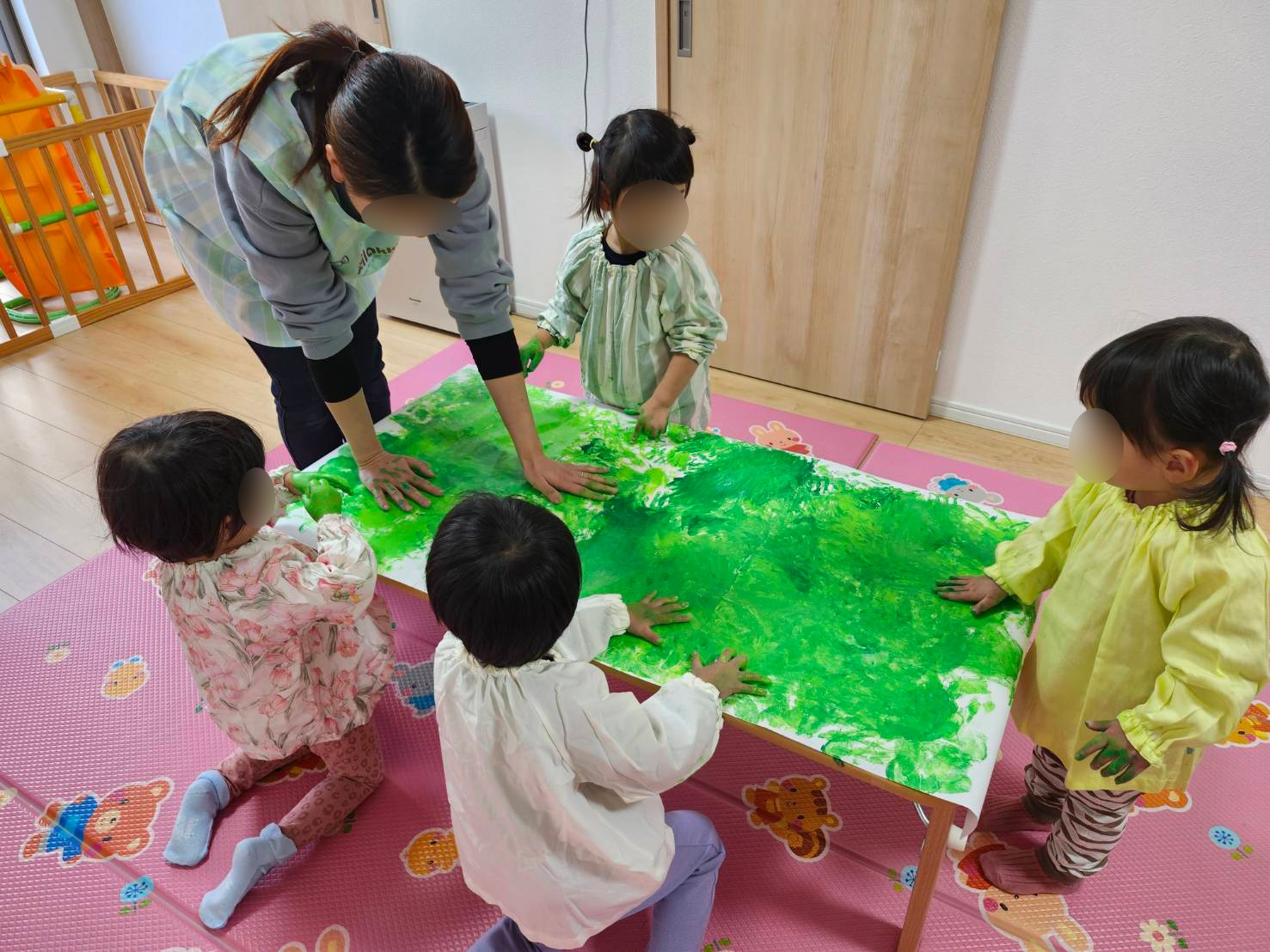 手に絵具をつけツリーの葉っぱを作りました。